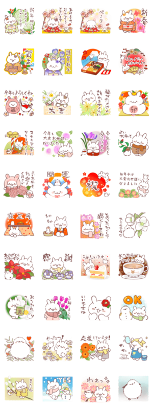 うさぎとシマエナガ ほっこり華やかお正月 スタンプ画像一覧