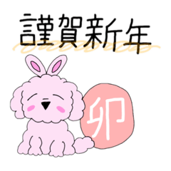 新年の挨拶に使えるスタンプです。トイプードルと干支を組み合わせています。びびと相棒 より発売