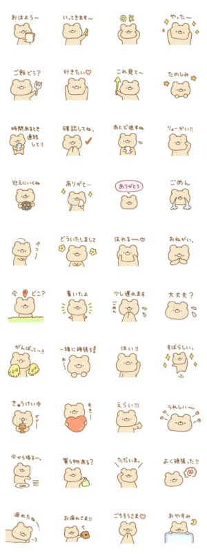おはよう~おやすみ、毎日使える ふんわり可愛いクマのスタンプ。友達・恋人・家族に…たくさん使ってください◎Ako.* より発売