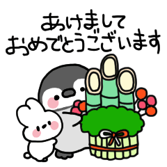 あけおめを伝えるペンギンとうさち。2023年リメイク版です。年末年始/卯年/謹賀新年/ゆるいイラスト/みんなに年末年始のご挨拶しよう♡