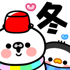 おやじ君とかわいいペンギンちゃんの冬スタンプ!背景が楽しく動くからねー♪前田ムサシ より発売