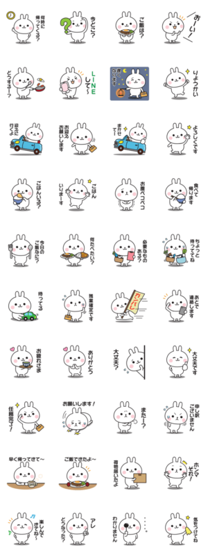 可愛いうさぎさんの家族の連絡用に使える言葉を集めたとっても使いやすいスタンプの第二弾です。パン より発売