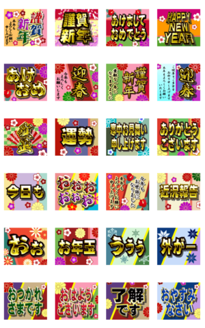 金文字が飛び出る勢いで拡大ループするデカ文字を中心に謹賀新年など年末年始にインパクトある冬向け和風のポップアップスタンプです※2023/1/3(火)23:59までに購入すると特典「LINEおみくじ」がもらえます。ハッピーリンク より発売
