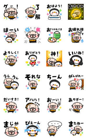 背景が動くよ!おやじ君とペンギンちゃんの楽しいスタンプです♪前田ムサシ より発売