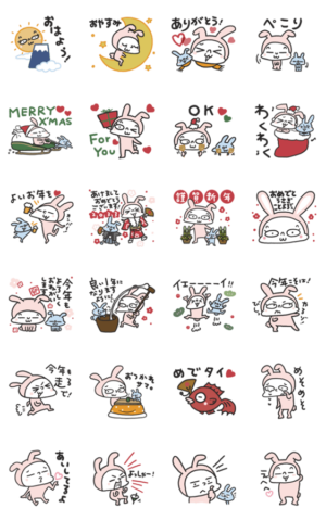 ぽんあみこの2023年verの年末年始スタンプです!うさぎ年、ホップステップジャンプ!