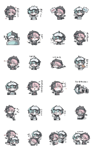 いちご色の子とミント色の子のスタンプです。hisame_mon より発売