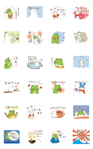 鳥獣戯画をモチーフにした、冬に使えるアニメーションスタンプです。カエル、ウサギの他にシマエナガも。日常会話や、お正月やクリスマス、年末年始のあいさつにもどうぞ♫三浦さくりーぬ より発売