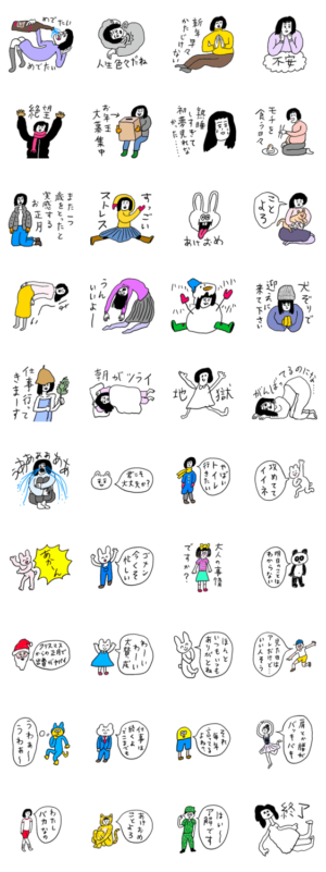 年末年始お正月に使えるシュールな女子スタンプです。イッレ・コスヤ より発売