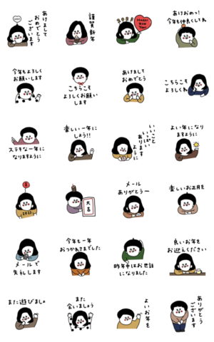 シンプルなので大人の女性でも使いやすいスタンプです。お正月。※2023/1/3(火)23:59までに購入すると特典「LINEおみくじ」がもらえます。
