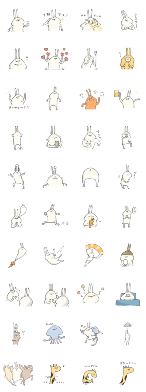 ウサギイラストのスタンプはよく見るのですがこの感じは斬新で面白さしかない。