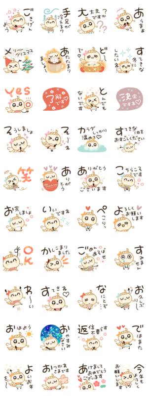 ほぺ代さんシリーズ♡上品に使える、女の子らしい冬スタンプです♡小さな幸せ/感謝あさごぱん より発売