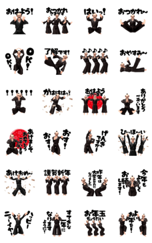 お正月にずっと使える、新年の挨拶スタンプです。おじさんが元気いっぱい、画面いっぱいに飛び出します。2022年あけおめスタンプの再販バージョンになります。
