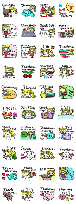 シンプルな日常会話スタンプです。英語スタンプnenerin より発売