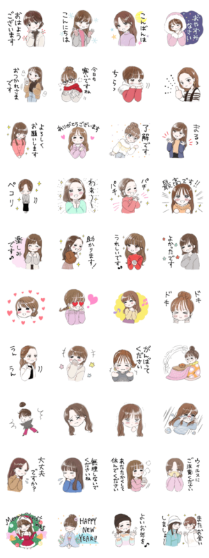 毎日使える冬服のあったか可愛いモテ子スタンプ♪(大人女子・敬語・上司・先輩・オシャレ・定番・女の子・冬・年末年始・友達・ゆる敬語)