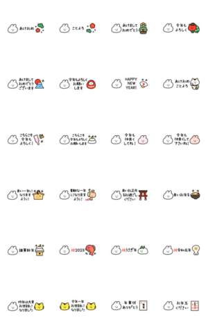 卯年/年賀状/お正月/スタンプ/2023年/令和5年/うさぎ/干支/あけおめ/ことよろ/今年もよろしく/年末年始/新年の挨拶/謹賀新年/お年玉/正月/良い/よいお年を/大晦日/シンプル※2023/1/3(火)23:59までに購入すると特典「LINEおみくじ」がもらえます。じゃむばたチーズ より発売