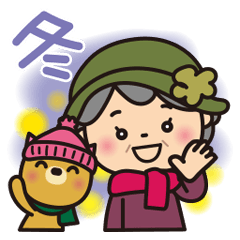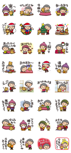 優しくてキュートなばぁばと子犬のスタンプ、冬バージョンです。Reiko より発売