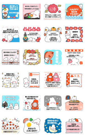 うさちのお正月のメッセージスタンプ!!自由に言葉を入れて使ってください。年末年始/卯年/ウサギ/2023年/新年/謹賀新年/正月/お年賀/あけましておめでとうございます♡※2023/1/3(火)23:59までに購入すると特典「LINEおみくじ」がもらえます。