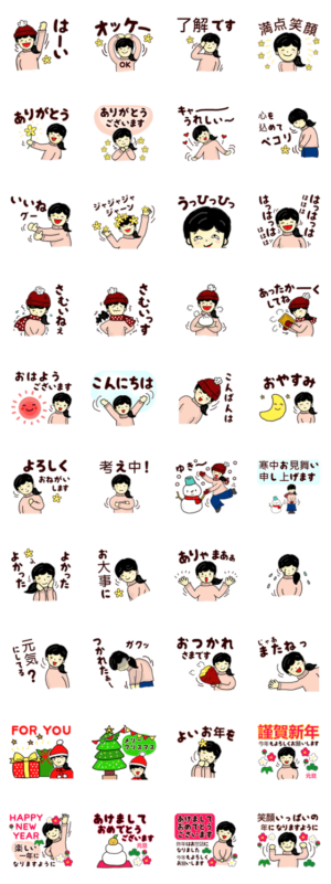 おばちゃんの寒い冬スタンプです。てんじくあおい より発売