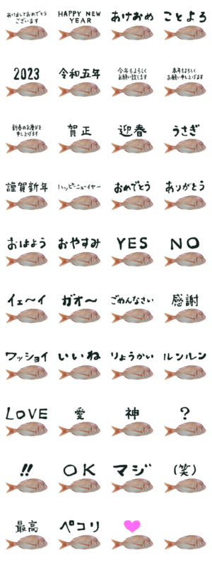 2023 年賀状 お魚 タイ お正月 スタンプ スタンプ画像一覧