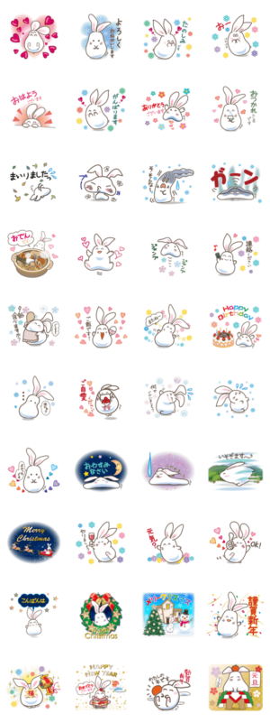 白ウサギの「うさ」です。よろしく。 2023年の干支はウサギ。 年末年始、毎日使えるスタンプです。山田 より発売