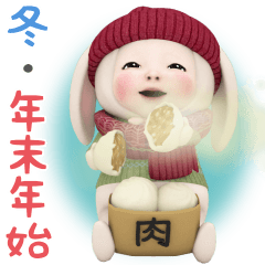 ウサギタオルの年末年始のスタンプです。年末や年始のご挨拶に是非使ってください