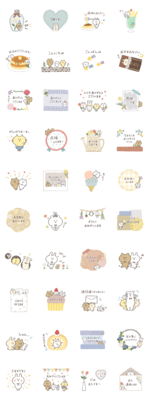 ゆるい動物たちのメッセージスタンプ3♪日常でよく使う言葉・敬語なので誰にでも使いやすいです。スイーツや花モチーフ多めの大人可愛いスタンプです。