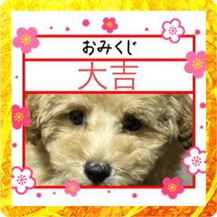 トイプードル桃太のお正月2023のスタンプです。 LINEスタンプメーカーでつくったスタンプです。※2023/1/3(火)23:59までに購入すると特典「LINEおみくじ」がもらえます。