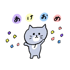 ゆるく動きながら灰色キャットがお正月をお祝いします。※あけおめスタンプ2022の再販になります。猫/お正月/あけおめ/年賀状/