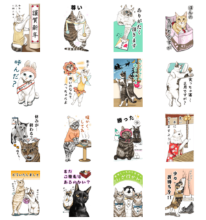冬、年末年始に何かと使える猫スタンプです ※このスタンプはトークルームで大きく表示されるBIGスタンプです。nekomangakakuyo より発売