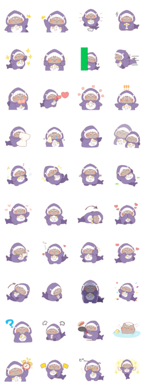 サメの着ぐるみを着た、にゃんこのスタンプです。かまってほしい時などにオススメです!駄菓子屋 より発売
