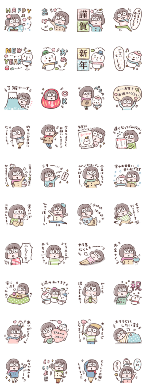 おかっぱめがね/年末年始(2020再販) スタンプ画像一覧