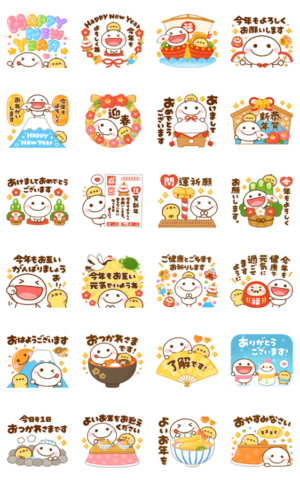 棒人間のちびマロが可愛く飛び出して動く♪年末年始・お正月に大活躍のポップアップスタンプです。※2023/1/3(火)23:59までに購入すると特典「LINEおみくじ」がもらえます。ぴよたぬき♡ より発売