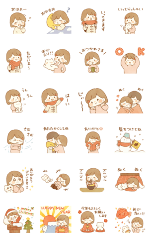 可愛い女の子の冬用のスタンプ。挨拶あり気遣いありの汎用性の高いスタンプです