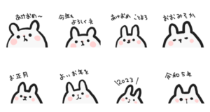 白いウサギのあけおめスタンプ2023年※2023/1/3(火)23:59までに購入すると特典「LINEおみくじ」がもらえます。Biddy より発売