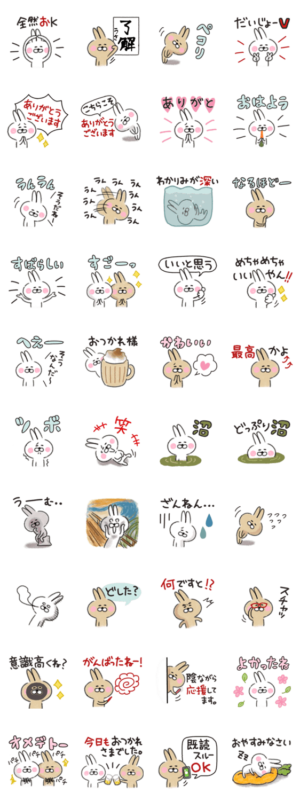毎日使いやすい共感するゆるいうさぎのスタンプです。m-coffee より発売