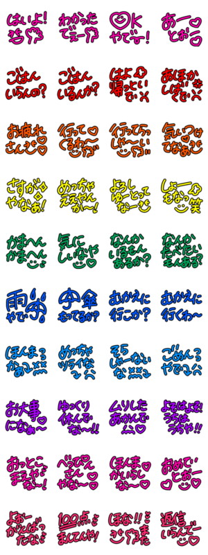 関西弁めっちゃ使いやすい毎日使える見やすい太字大文字お母さんオカン子ども子育て育児返信気持ちが伝わる学校ママ友達家族娘息子可愛いカラフル派手おばちゃん連絡挨拶愛