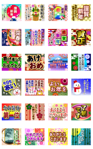 謹賀新年など年賀や年末年始の挨拶を中心に、寒中見舞いなどの他おはようからおやすみ毎日使えるものまでビッグに伝えます※2023/1/3(火)23:59までに購入すると特典「LINEおみくじ」がもらえます。ハッピーリンク より発売