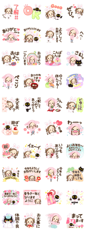 ウサ耳を着けた女の子のスタンプがとても可愛らしいと思いました。