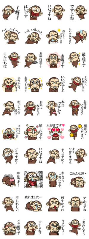 イラッとお猿さんのよく使う【敬語】を集めた便利なスタンプセットです。セイコウ より発売