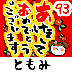 ともみ/トモミ専用93ずっと使える/2023年/正月/お正月/年賀/年賀状/卯年/元旦/年末年始/謹賀新年/賀正/華やか/飛び出す/筆文字/あけおめ/デカ文字/山田まぽん作