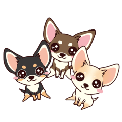 人気のチワワのブラックタン、クリーム、チョコタンの3匹が大集合したスタンプです!普段のちょっとした連絡にも使いやすい内容です。