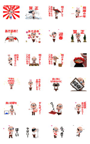 部長の新年用スタンプです。初夢,羽子板,お屠蘇,合格祈願,謹賀新年,あけおめ,エレキギター,賀正等年始行事。 ※BROWN & FRIENDS をみんなでつくろう!キャンペーン参加スタンプですG-flash より発売