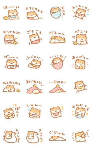 脱力系ハムスターすやはむが赤ちゃんになりました。ゆるっと使いやすいスタンプです。赤ちゃんになったような気持ちでご利用ください。すやお より発売