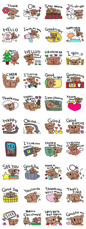 シンプルな日常会話スタンプです。英語スタンプnenerin より発売
