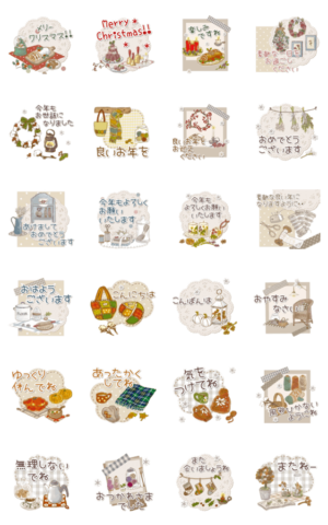 ナチュラルでほんわか癒しのイラストが画面いっぱいにとび出して、メッセージカードのように使っていただけます。日常の挨拶やクリスマス・お正月にも使えます。ecru*(Sasaki Hiroko) より発売