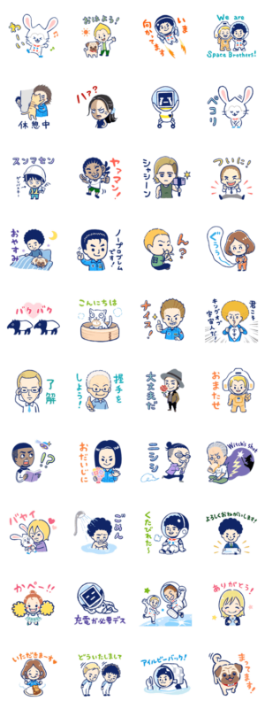 宇宙兄弟のキャラクターが可愛くなってスタンプに。イラストは宇宙兄弟アシスタントのあさころが描き、原案は宇宙兄弟ファンの方々と一緒に考えました!コルク より発売