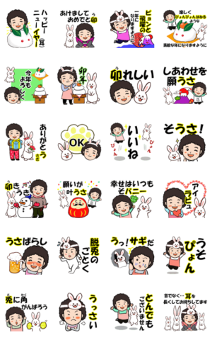 (眼鏡無し)おばちゃまスタンプ 卯年ギャグ スタンプ画像一覧