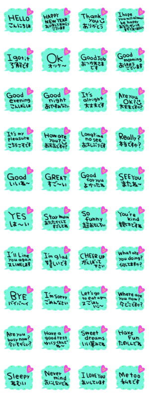 シンプルな日常会話スタンプです。日本語&英語スタンプ