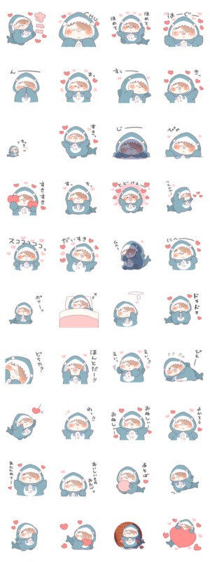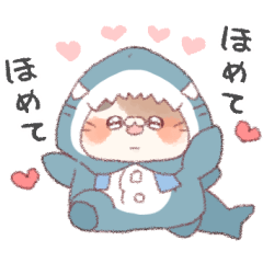 サメの着ぐるみを着た、にゃんこのスタンプです。かまってほしい時などにオススメです!駄菓子屋 より発売