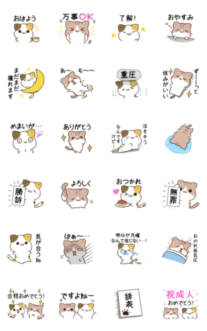 お疲れ気味 やる気が出ない時に使えるゆるかわ三毛猫とキジトラ白猫のアニメーションスタンプ第10弾 仕事 社畜 体調不良 春夏秋冬 成人の日 低気圧 合格